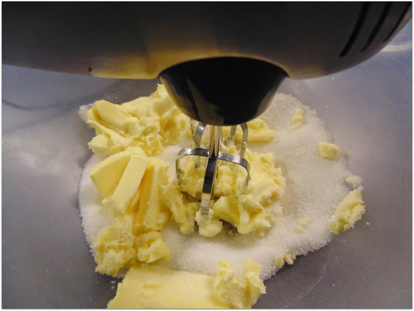 En primer lugar disponemos los ingredientes y comenzamos batiendo la mantequilla a temperatura ambiente con el azúcar hasta que espumee.