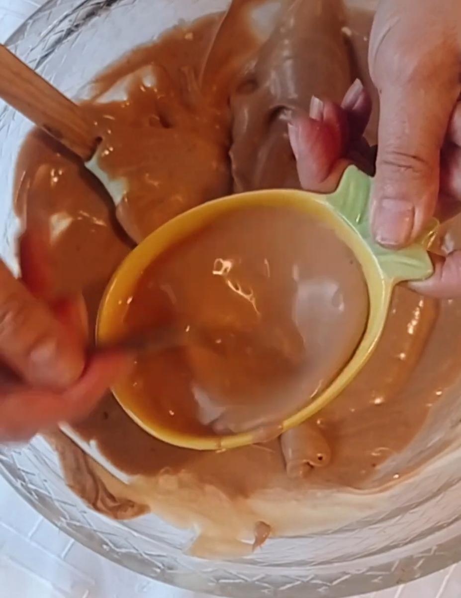 3- Separar media taza de la preparación y mezclar con la gelatina, luego incorporar a la mezcla de cheesecake.