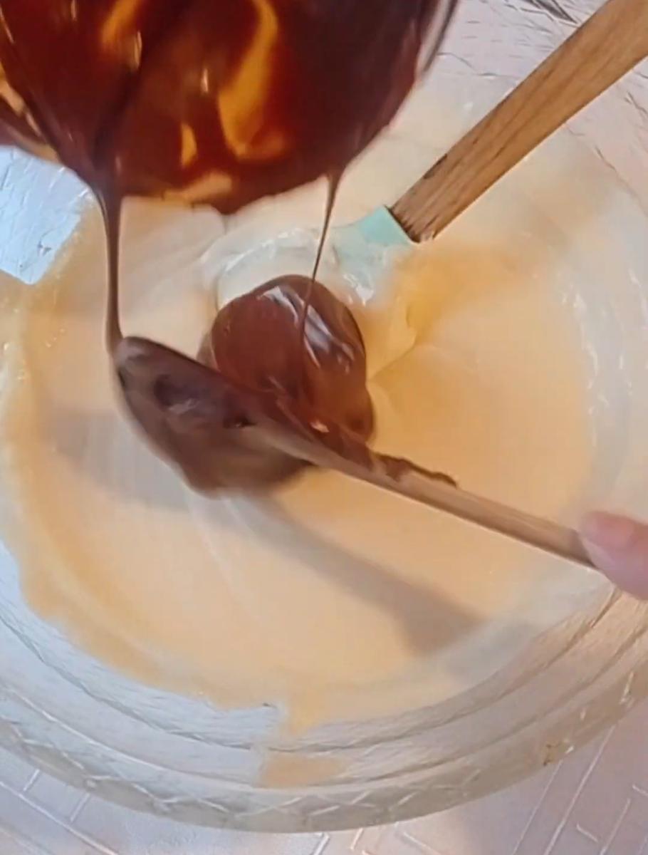 1-Mezclar el queso crema, azúcar, esencia, la crema y la crema de avellanas.