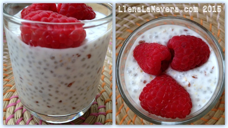 1 Cucharada pequeña de almendras trituradas (en mi caso, previamente usadas para hacer leche de almendras).Basicamente tienes que mezclar todo en un bol y dejarlo reposar como mínimo 6h. Yo normalmente lo preparo la noche anterior.