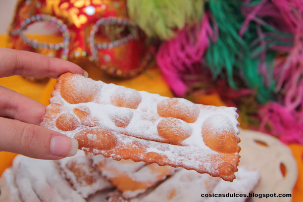 Una vez fritos los espolvoreamos de azúcar glass. Pese a ser un dulce frito aguantan igual de ricos de un día para otro.