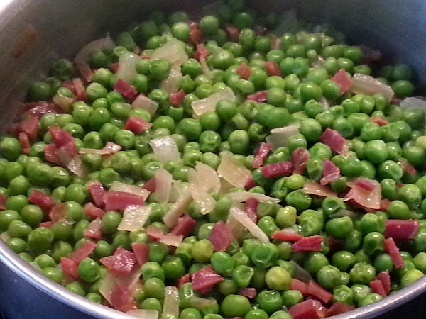 Hoy toca un poquito de verde, que ya va siendo hora.....Así que propongo un guiso de los de toda la vida, los guisantes con jamón, a mí personalmente es un plato que me encanta.