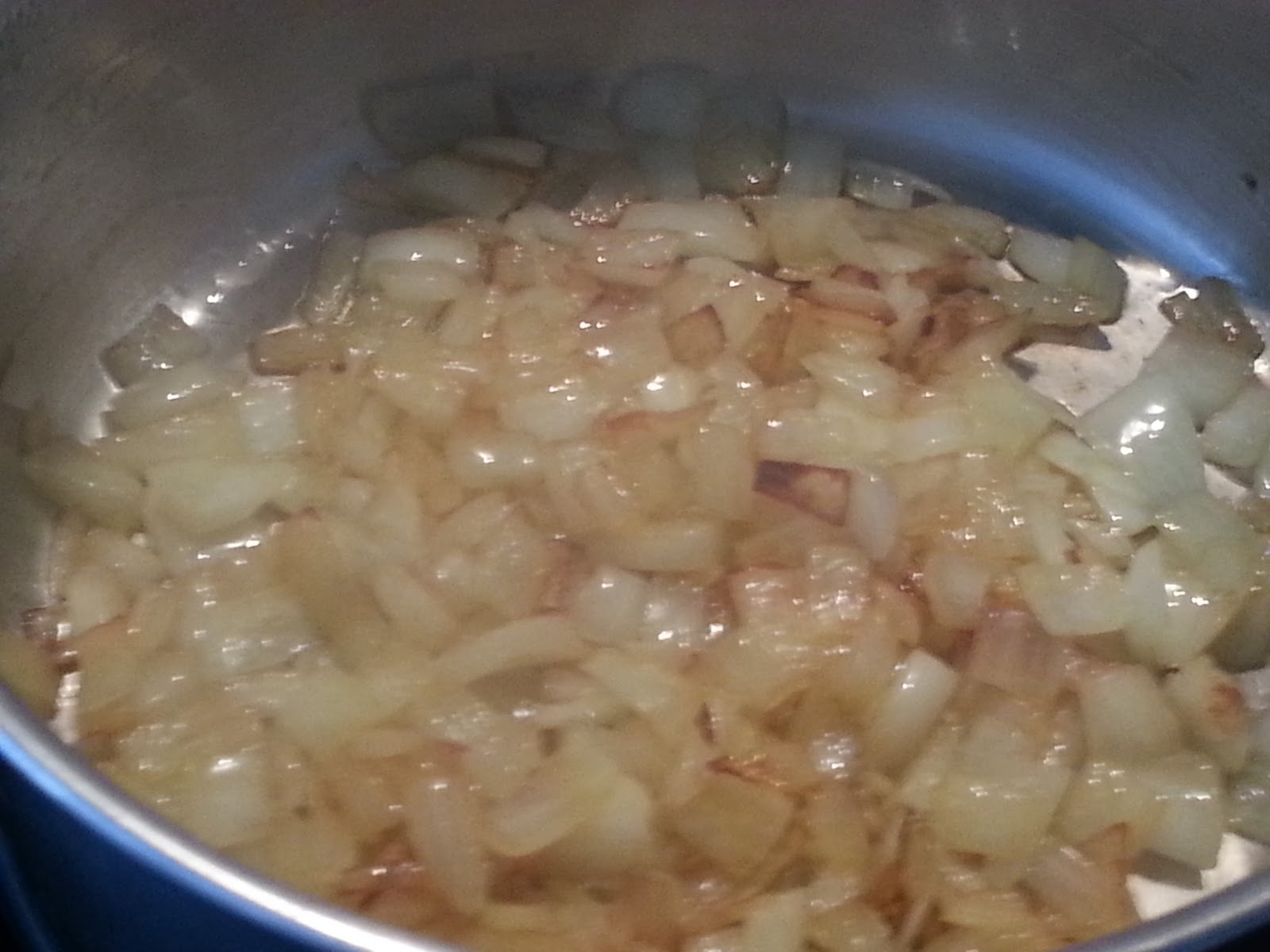 1. - Cortamos la cebolla y sofreímos a fuego medio durante unos 5 minutos, hasta que empiece a estar trasparente.