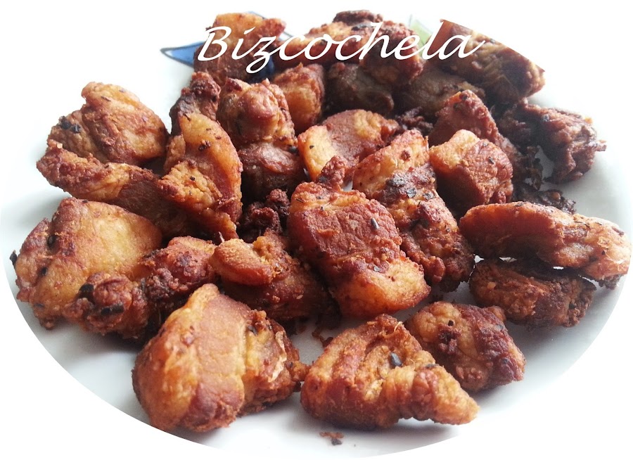 Los chicharrones se hacen con pella o papada de cerdo, yo he utilizado la papada, que tiene más carne, pero se pueden hacer mitad y mitad.
