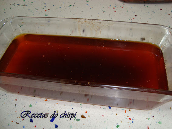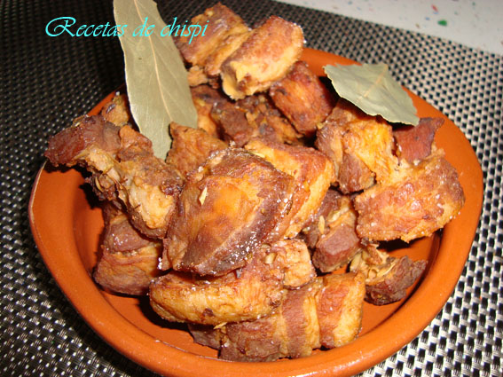 Con una espumadera sacar los trozos de carne, ponerlos en una fuente y la manteca que queda colarla en un recipiente que aguante la calor, porque coge mucha temperatura.