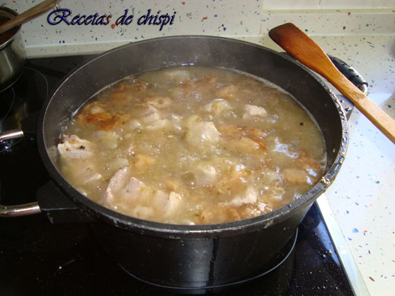 Cuando la carne haya cogido el color dorado apartarla del fuego y echar el pimentón, dejar que enfrie un poco.