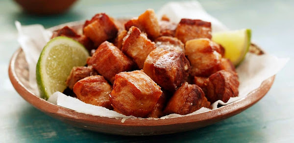 En una olla grande caliente colocar los trozos de cerdo revolver,al comenzar a dorar agregar jugo de limón,achiote,orégano,sal,pimienta,tomillo y agua bajar a calor medio bajo tapar y cocinar,revolver ocasionalmente cocinar hasta dorar bien los trozos de cerdo.