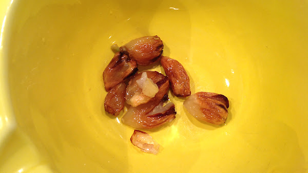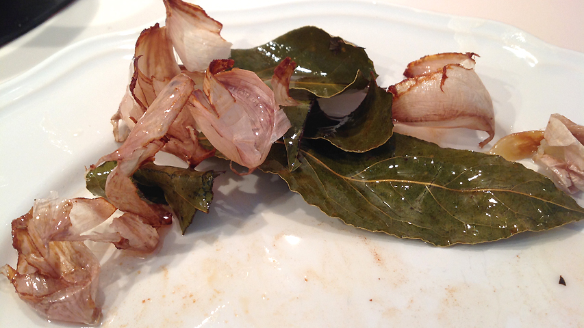 Saco los ajos y las hojas de laurel de la olla. La pulpa de los ajos la aprovecharé.