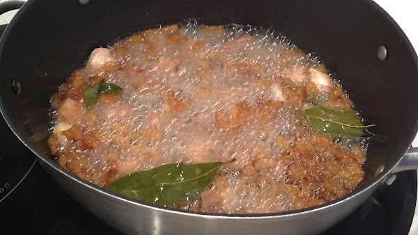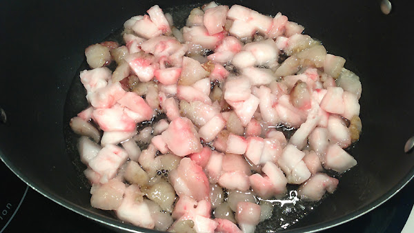 Cuando la manteca se haya derretido puedes introducir los trozos de panceta sazonados.