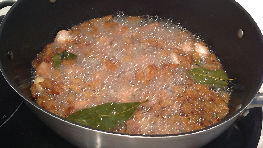 Poco a poco la pella irá "desapareciendo" y se irá licuando convirtiéndose la grasa que necesitamos para freír la carne.