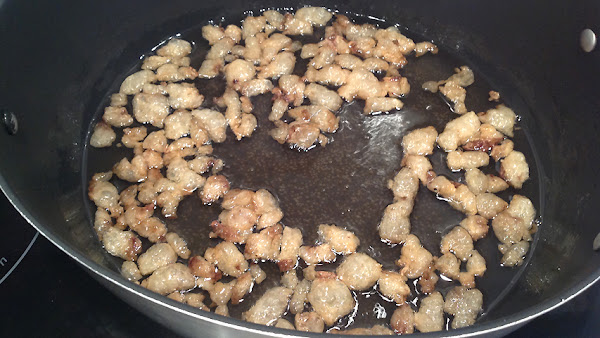 Saca los trozos grandes de carne a un plato con un papel de cocina. Cuando enfríen puedes servirlos.