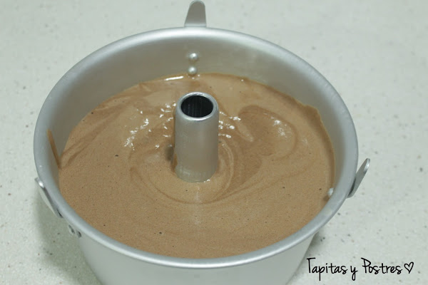 Y vertemos en nuestro molde de chiffon. Al horno.