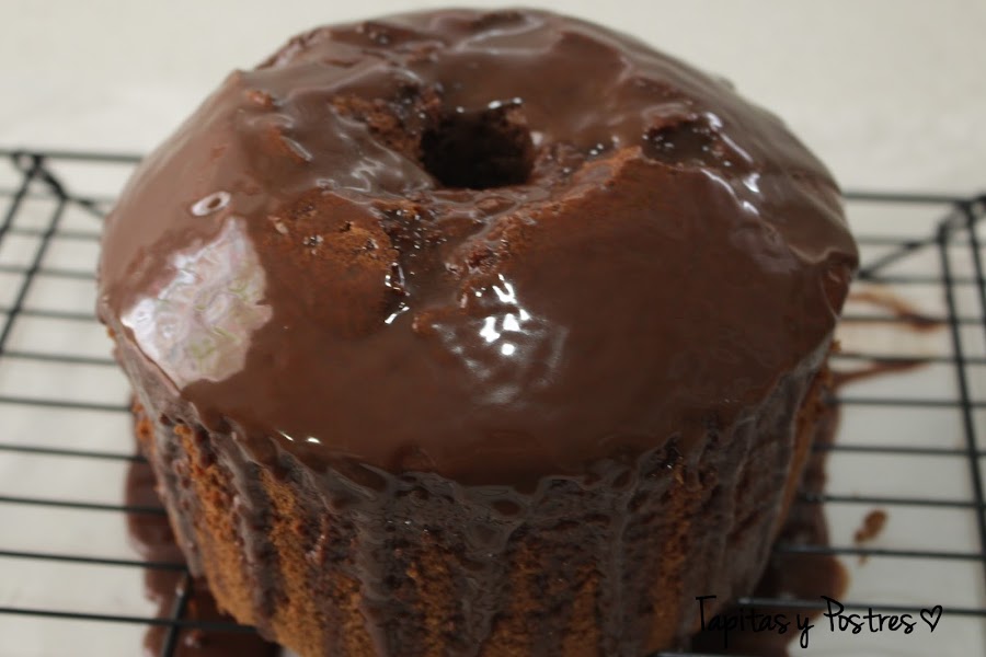 Cubrimos el chiffon cake con la cobertura de chocolate.