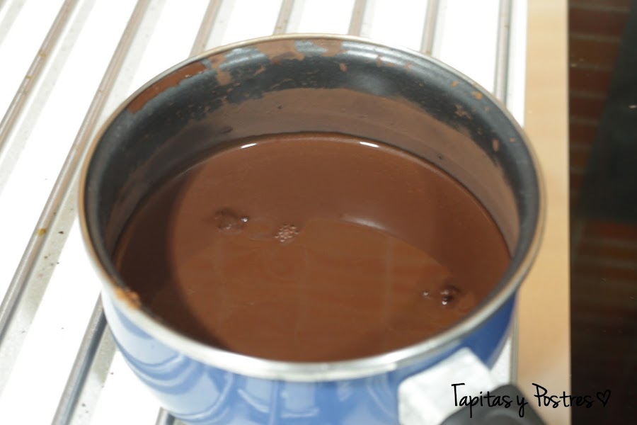 Y ahora vamos con la cobertura. Calentamos la nata (crema de leche).