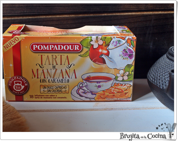 Además la he preparado con una infusión, ya sabeis que no soy cafetera y tengo miles de tés e infusiones en casa. La de hoy es de Pompadour de tarta de manzana y caramelo y sin azúcar, por lo que te puedes dar un capricho y sin remordimientos. Es una novedad y me venía en la Disfrutabox de este mes, si es que molan están cajas con cosas nuevas tanto de alimentación como de belleza, también venía una mascarilla que me vendrá genial para intentar refrescar la cara y que no se note la falta de sueño.