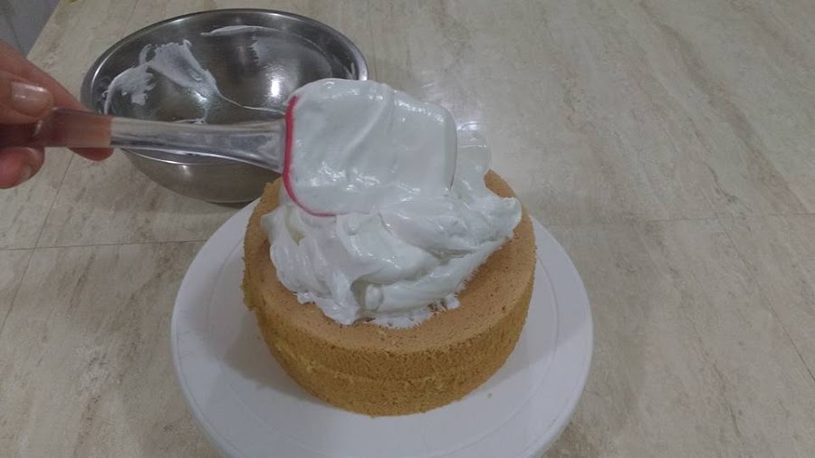Pon la otra mitad encima y coloca todo el Merengue encima como una montaña.
