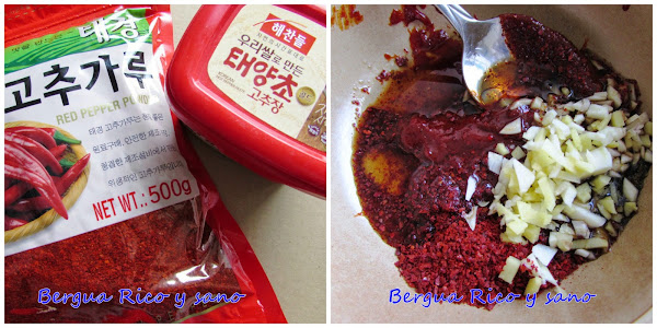 1-2 cucharadas de pasta coreana de guindilla (gochujang, hot pepper paste; se puede sustituir por sambal oelek)