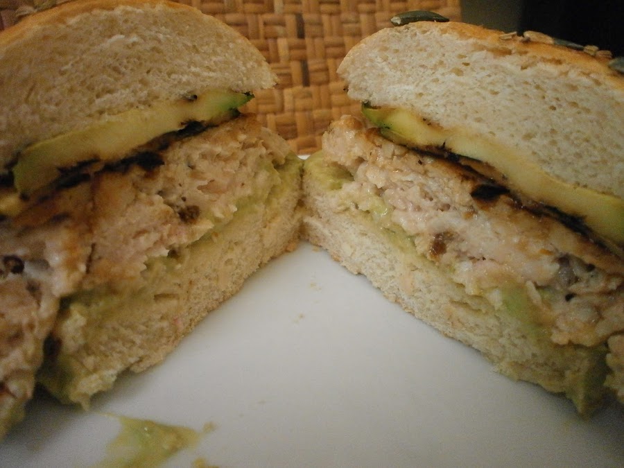 Cortar los buns, y untar la parte inferior con la salsa de aguacate, coloque la hamburguesa y luego el calabacín.
