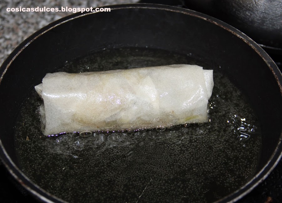 Este mes, los componentes del Desafío en la Cocina nos hemos propuesto recorrer el mundo, al menos, y hasta que nos toque un bote del Euromillón, culinariamente. Gracias a un jueguecito que han maquinado las perversas mentes de las desafiadoras cada una de nosotras ha viajado hasta un continente diferente. A mí me ha tocado acompañar a mi querida Mabel ni más ni menos que hasta nuestras antípodas así que he preparado mi maleta y me he marchado hasta Australia donde he degustado uno de sus aperitivos más populares: el chiko rolls (en mi opinión es lo mismo que un rollito de primavera pero con otro nombre). Sea como sea sólo me queda deciros que en casa nos ha gustado mucho y que prepararlo me ha servido también para hacer un descubrimiento: nunca, jamás de los jamases, volveré a comprar pasta brick en Mercadona (la empaquetan doblada, esto hace que la lamina se agriete y termine por romperse así que no os la recomiendo)...y después de la crítica os dejo con la receta. Espero que os guste.
