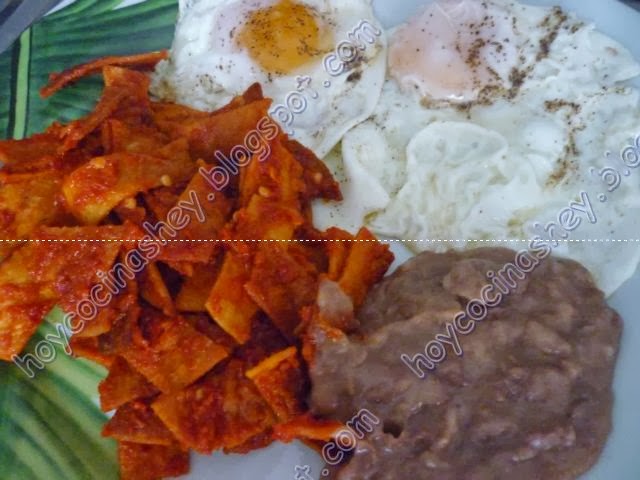 Acompañamos con frijoles, y huevos fritos o revueltos, encima de los chilaquiles si deseas ponemos cebolleta en juliana, crema y espolvoreamos queso cotija, y a comer:
