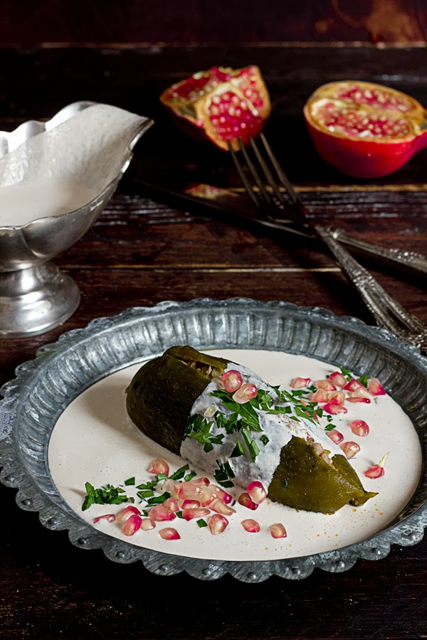 Me enamoré de ésta receta desde el primer momento, así que cuando vi que desde La cocina mexicana de Pili, nos invitaban a preparar cualquiera de sus platos para celebrar su "mes patrio", no lo dudé y aquí están estos chiles poblanos en nogada, no es nada original, pero me moría de ganas de hacerlo. Las granadas no son lo rojas que quisiera porque estamos empezando la temporada y no las he encontrado mejores.