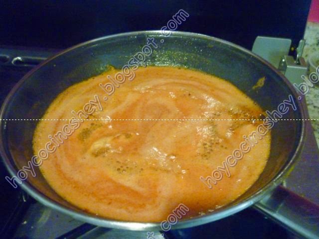 Por ultimo hacemos un caldillo de tomate, colocamos en la licuadora los dos jitomates, la cebolla, sal y un poco de agua, molemos y en una cazuela con un chorro de aceite vaciamos la mezcla y la dejamos cocinar por 10 minutos: