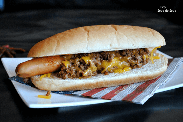 Cortar los panes por la mitad sin llegar a cortarlos por completo y colocar la salchicha encima, cubrir la salchicha con la salsa Beef-Chili y espolvorear con el queso rallado. Gratinar unos minutos en el horno y Servir.