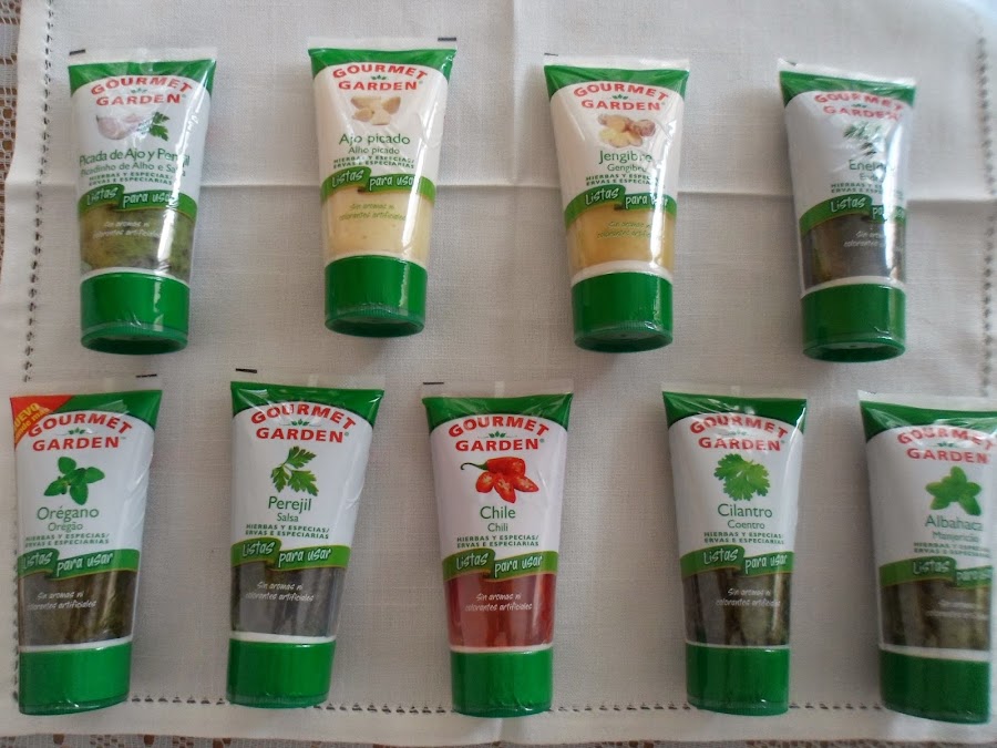 Aquí os dejo la foto de los productos que me mandaron Hierbas y Especias Gourmet Garden. Tienen una calidad excelente y un sabor super intenso, vamos que con poquito consigues el sabor que deseas.