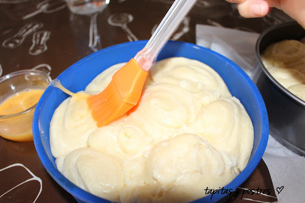 Las pintamos con huevo batido y al horno. Unos 25 minutos, pero a la mitad lo tapamos con papel de aluminio porque si no se dora mucho.