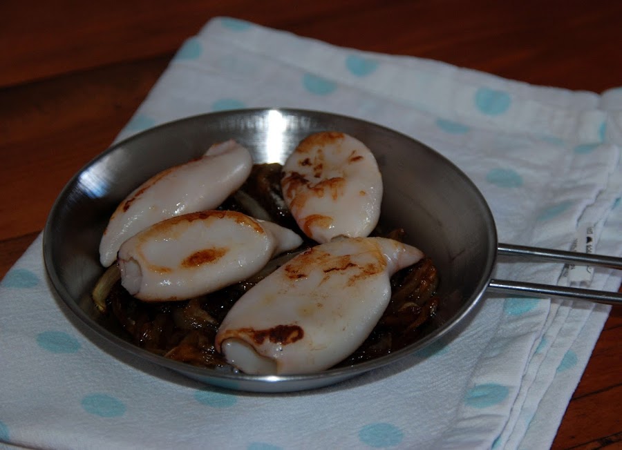 Colocar los chipirones sobre una cama de cebolla caramelizada al PX.