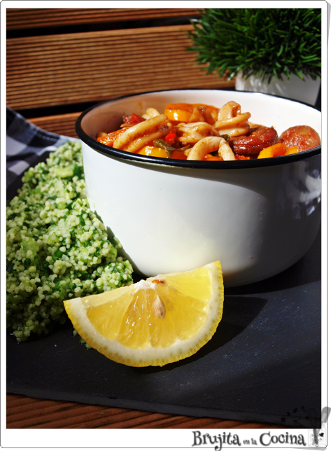 El acompañamiento también es peculiar cuscús con espinacas y toque de menta, ah que hoy lo traigo todo raro. Probad, muchas veces nos limitamos a comer lo de siempre pero porque una vez lo probamos y nos gustó, por eso es necesario probar cosas nuevas. A mi mi padre me enseñó a probar de todo para poder tener una opinión, de hecho si digo que algo no me gusta es porque lo probé y no me gustó, y esto lo he probado y me gusta, posiblemente se convierta en casa en una de esas recetas de las que llamaremos "de siempre"