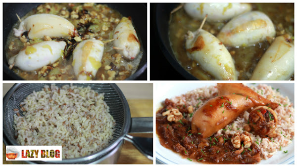 Se trata de una receta estupenda para llevar a la oficina ya que es un plto muy completo que hemos acompañado de un arroz Lotao muy sabroso que sirve de guarnición y cuyo sabor muy aromático y con toques ahumados le va muy bien tanto a las nueces como a los chipirones. Si tenéis ocasión no dejéis de probarlo.