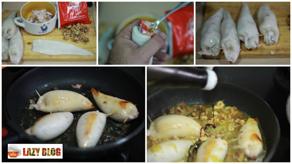Cómo hacer chipirones rellenos de sus aletas, gambas y nueces de California