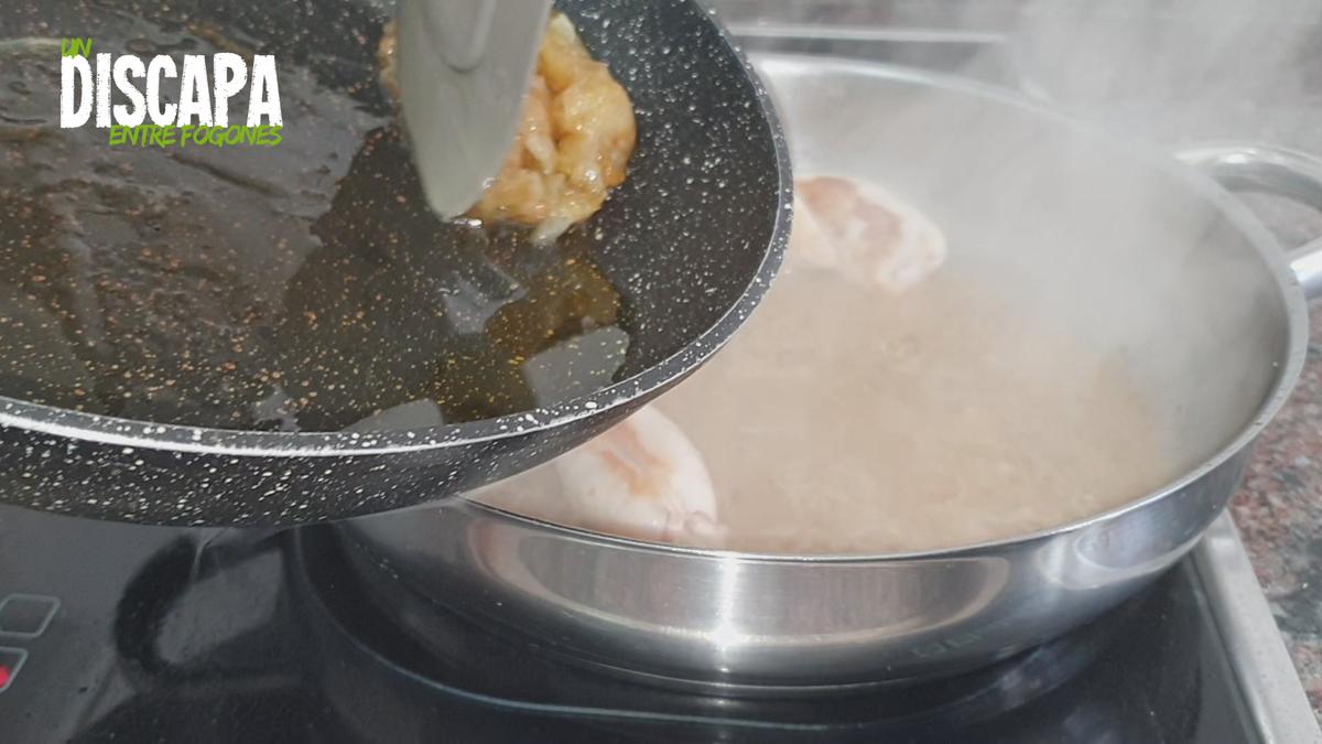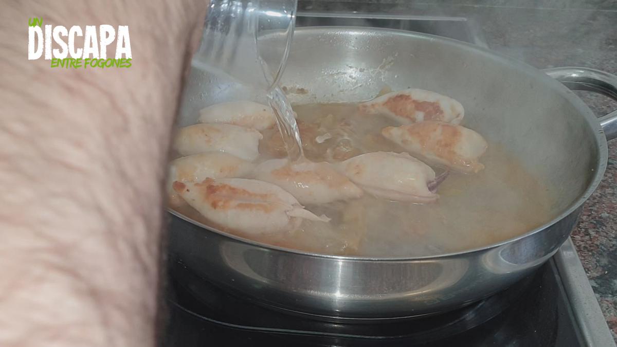 4Después añadimos un vaso de vino blanco, dejamos que se evapore el alcohol.