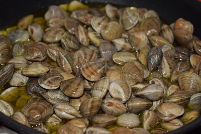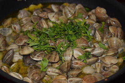 Las chirlas irán soltando su propio jugo, y en unos 2 minutos estarán abiertas. No hay que pasarse en la cocción pues se quedarían secas.