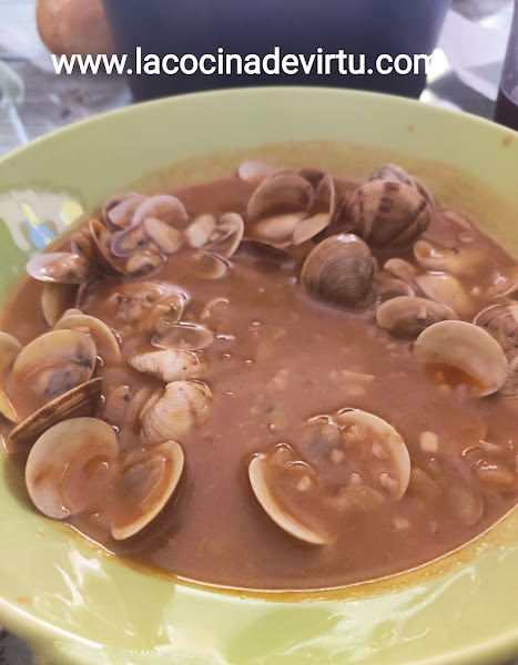 Dejamos que se reduzca durante unos 5 minutos y metemos en la sartén las almejas que teníamos abiertas y reservadas. Dejamos otros 3 ó 4 minutos hasta que la salsa alcance el punto de espesor que nos guste y apagamos el fuego