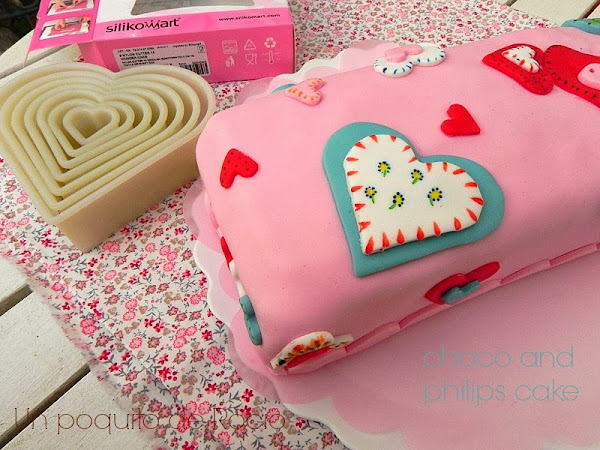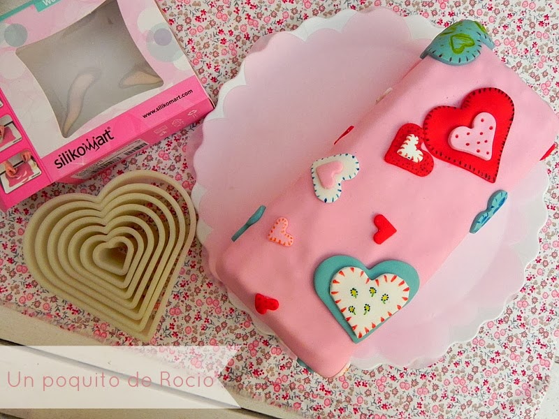 El mismo día que hice este bizcocho, me llegaron los moldes de silicona y cuando ví los corazones de todos los tamaños, no me pude resistir y tuve que cortar y cortar. Son unos cortadores fantásticos de usar y limpiar, no se deforman y no tienen los inconvenientes de los metálicos. Muy muy recomendables y además en un sólo paquete tenéis corazones absolutamente de todos los tamaños que os puedan hacer falta en cualquier momento.