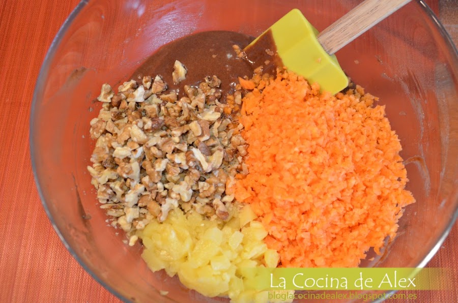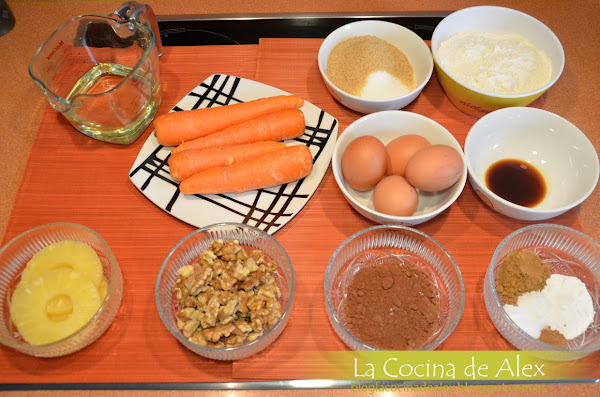 Vais a ver que la tarta tiene bastantes ingredientes, pero no quiero que os asustéis, que os pongáis manos a la masa y hagáis esta tarta porque no os vais a arrepentir de su magnífico sabor y de lo sencilla que es de hacer, sobre todo si seguís nuestro paso a paso. El sabor que tiene esta tarta os va a sorprender gracias a la zanahoria y la piña, además del autentico sabor a chocolate gracias al poco azúcar que lleva.