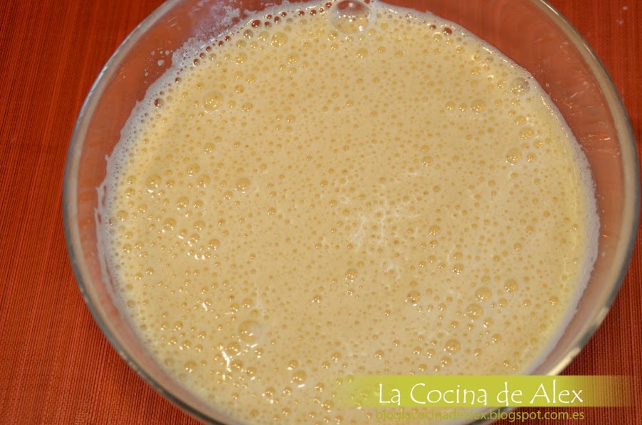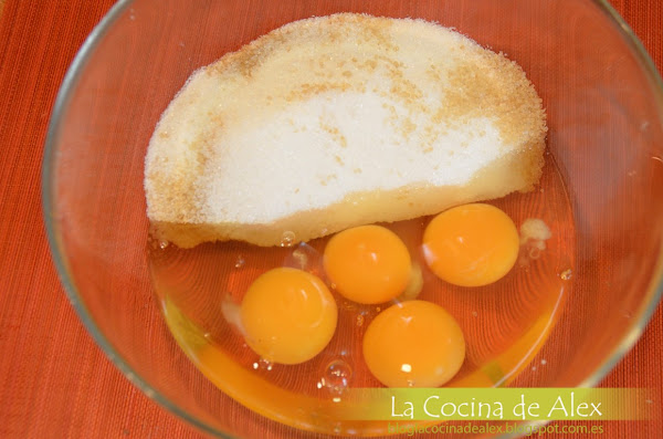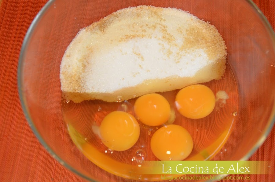 En otro bol batimos los huevos con los dos tipo de azúcar hasta que la mezcla sea blanca y esponjosa.