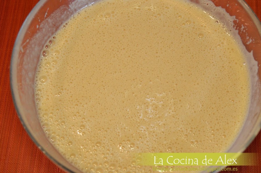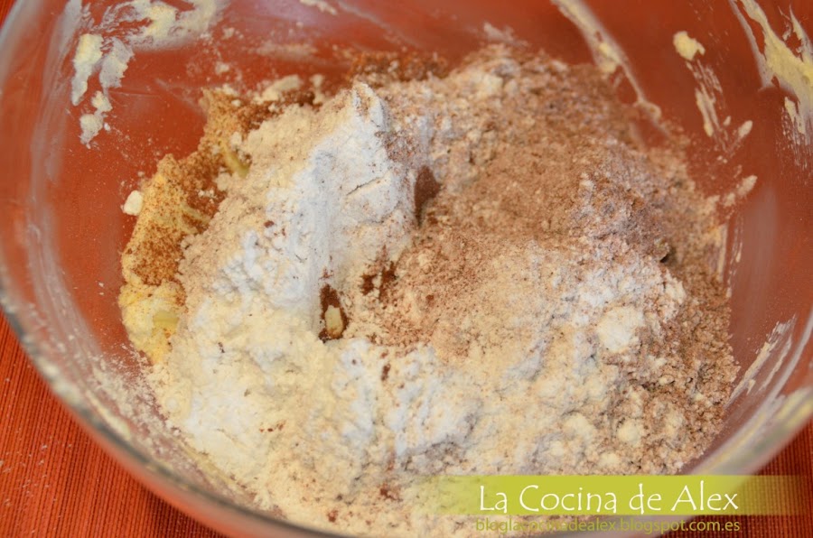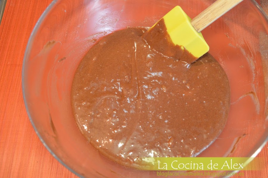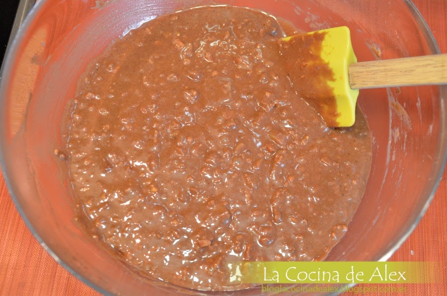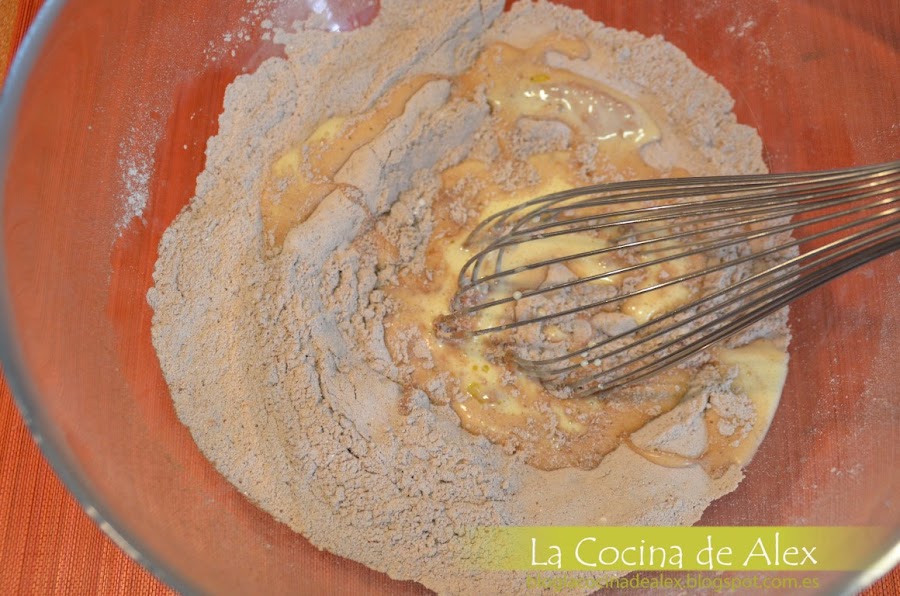 Ahora incorporamos esta mezcla a los ingredientes secos, removiendo con cuidado hasta que se mezcla todo homogéneamente.