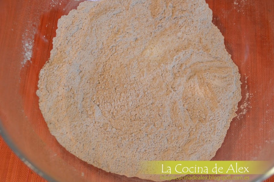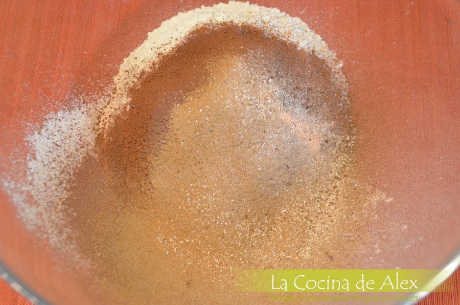 PREPARACIÓN:Lo primero que haremos será el bizcocho de "Choco Carrot". En un bol ponemos todos los ingredientes secos tamizados, es decir, la harina, bicarbonato, sal, levadura, canela, cacao en polvo y nuez moscada. Y removemos hasta que la mezcla se homogénea.