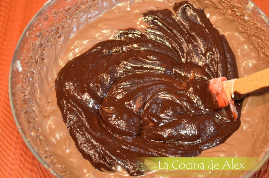 Ahora solo queda incorporar la mezcla del chocolate a la mezcla anterior de la mantequilla y seguir batiendo hasta conseguir el frosting.