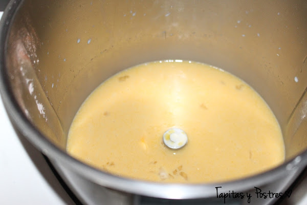 Sin lavar el vaso ponemos la leche y la levadura desmenuzada y calentamos un minuto, 37º y velocidad 2.