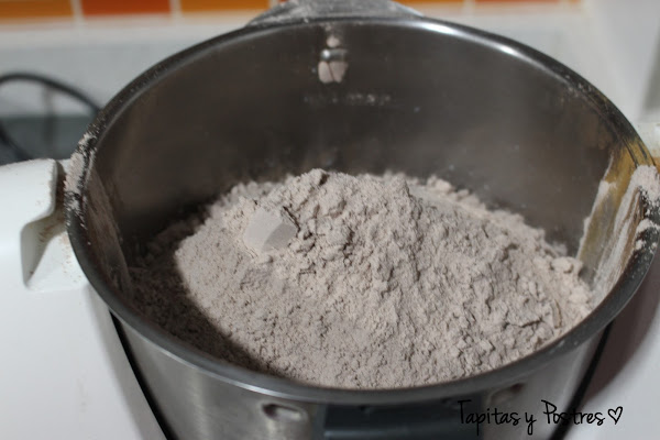 Ponemos la harina,canela, cacao y sal en el vaso de la thermomix y tamizamos.
