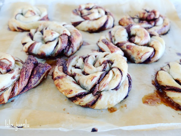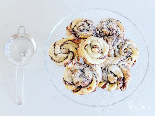 Colocamos la otra lámina de hojaldre encima y cortamos pequeñas tiras, hacemos tirabuzones y las enrollamos. Como dice Dulcinea, no han de quedar perfectas, sino que parezcan algo rústico y artesano.