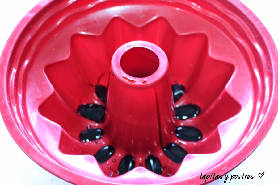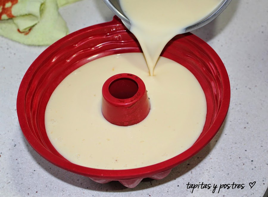 Vamos a poner caramelo en un molde, yo he usado uno de silicona de unos 22 cm.