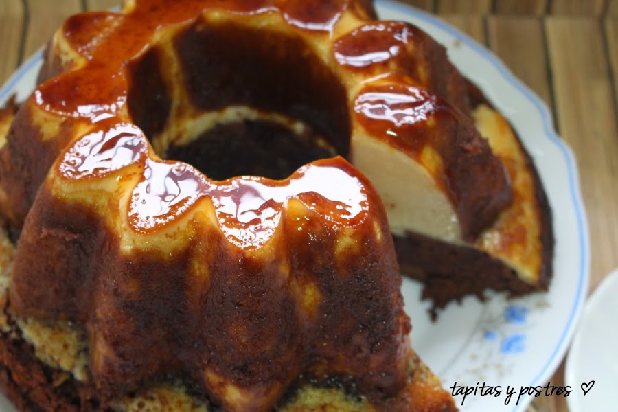 El flan sabe a leche condensada, si os gusta, vais a alucinar. Y el bizcocho está tierno y jugoso.