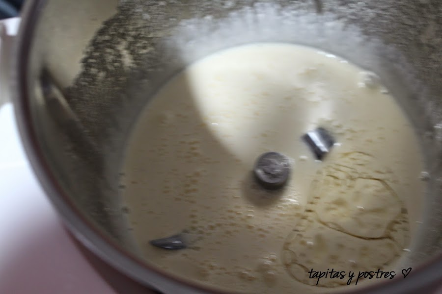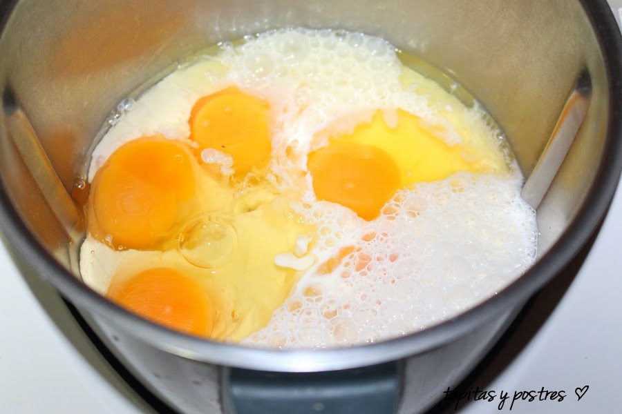 Ponemos los huevos, la leche condensada y la evaporada y batimos 3 minutos a velocidad 4.