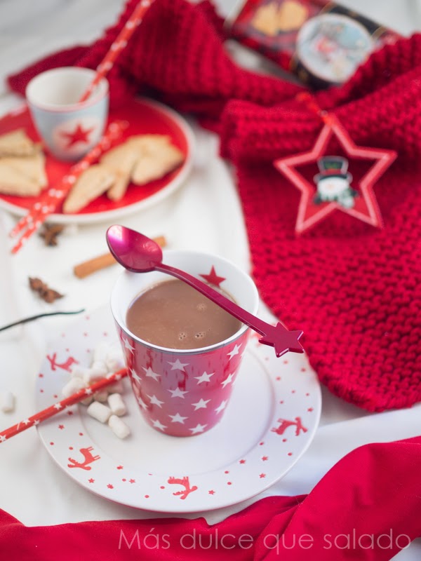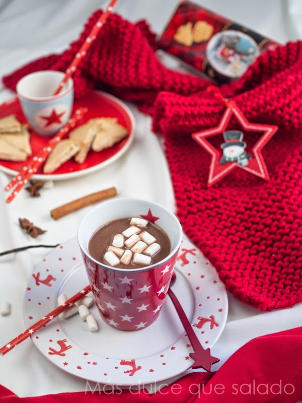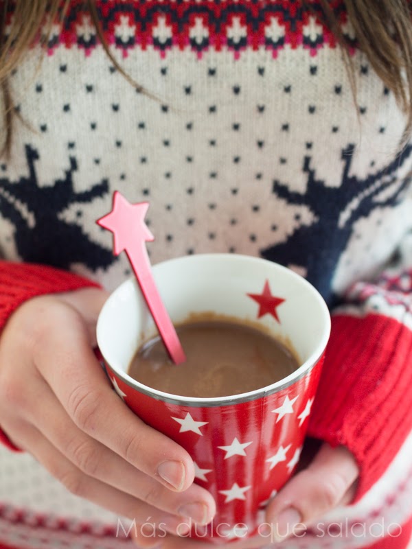 No hay nada como una taza de chocolate caliente entre las manos para entrar en calor en estos días fríos. Una mantita por encima, las luces del árbol, una peli, la familia y el perro con su cabeza peluda apoyada en los pies ( sí es que no se ha subido ya en busca del calorcito de la manta). Y ya tenemos la tarde perfecta!!