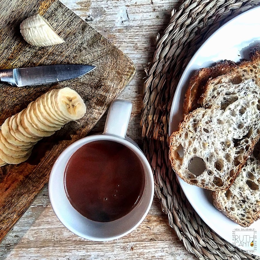 Lo acompañe de unas tostadas y un plátano, un gran desayuno o una deliciosa merienda ¿ no os parece?.